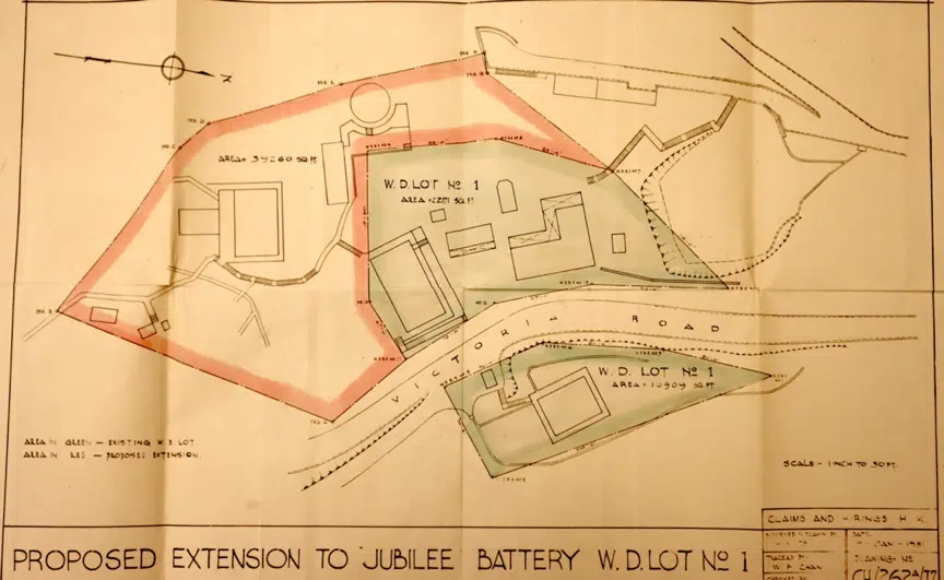 Site for Practice Battery, Mount Davis 1905 , know as Jubilee Battery and The Hong Kong Jockey Club University of Chicago Academic Complex nowadays.